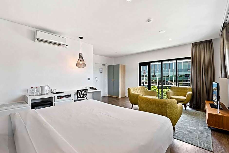 This air-conditioned suite is consisted of of a flat-screen TV with cable channels, a private bathroom as well as a balcony.